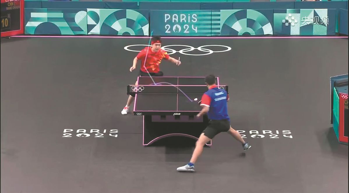 SenseTime's smart broadcasting technology is seen during a table tennis match at the Paris Games. A SCREENSHOT FROM CHINA MEDIA GROUP MOBILE