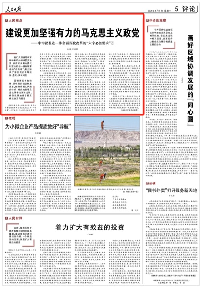 《决定》提出“六个必然要求”,其中一个重要方面就是“深入推进新时代党的建设新的伟大工程、建设更加坚强有力的马克思主义政党的必然要求”。党的领导是进一步全面深化改革、推进中国式现代化的根本保证。学习好贯彻好全会精神,就要保持以党的自我革命引领社会革命的高度自觉,坚持用改革精神和严的标准管党治党,完善党的自我革命制度规范体系,不断推进党的自我净化、自我完善、自我革新、自我提高,确保党始终成为中国特色社会主义事业的坚强领导核心。【全文】