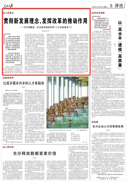 党的二十届三中全会审议通过的《中共中央关于进一步全面深化改革、推进中国式现代化的决定》(以下简称《决定》),是指导新征程上进一步全面深化改革的纲领性文件。继续把改革推向前进,必须牢牢把握《决定》提出的进一步全面深化改革的“六个必然要求”。