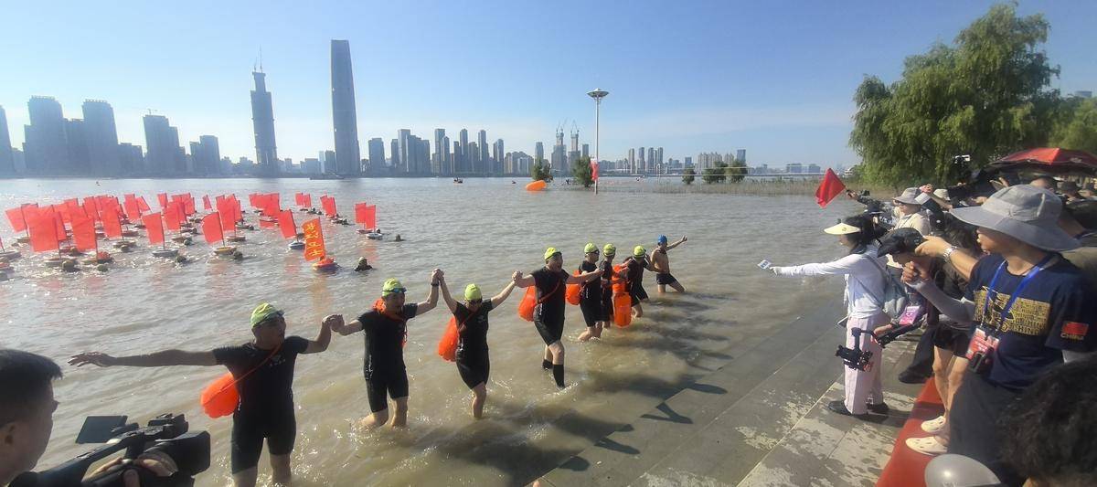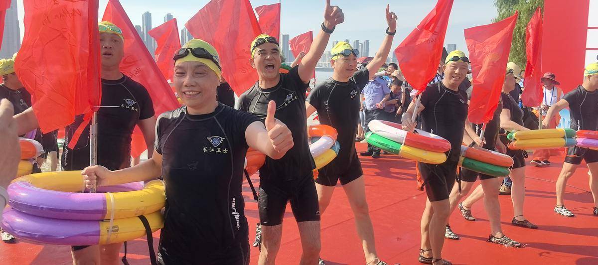 刚刚,首支群众横渡方队抵达江滩三阳广场,他们是备受关注的红旗方阵,由武汉市武昌区长江卫士退役军人志愿服务队的成员组成。他们用行动践行着他们的口号:退役军人永远向前,保护长江,服务人民。