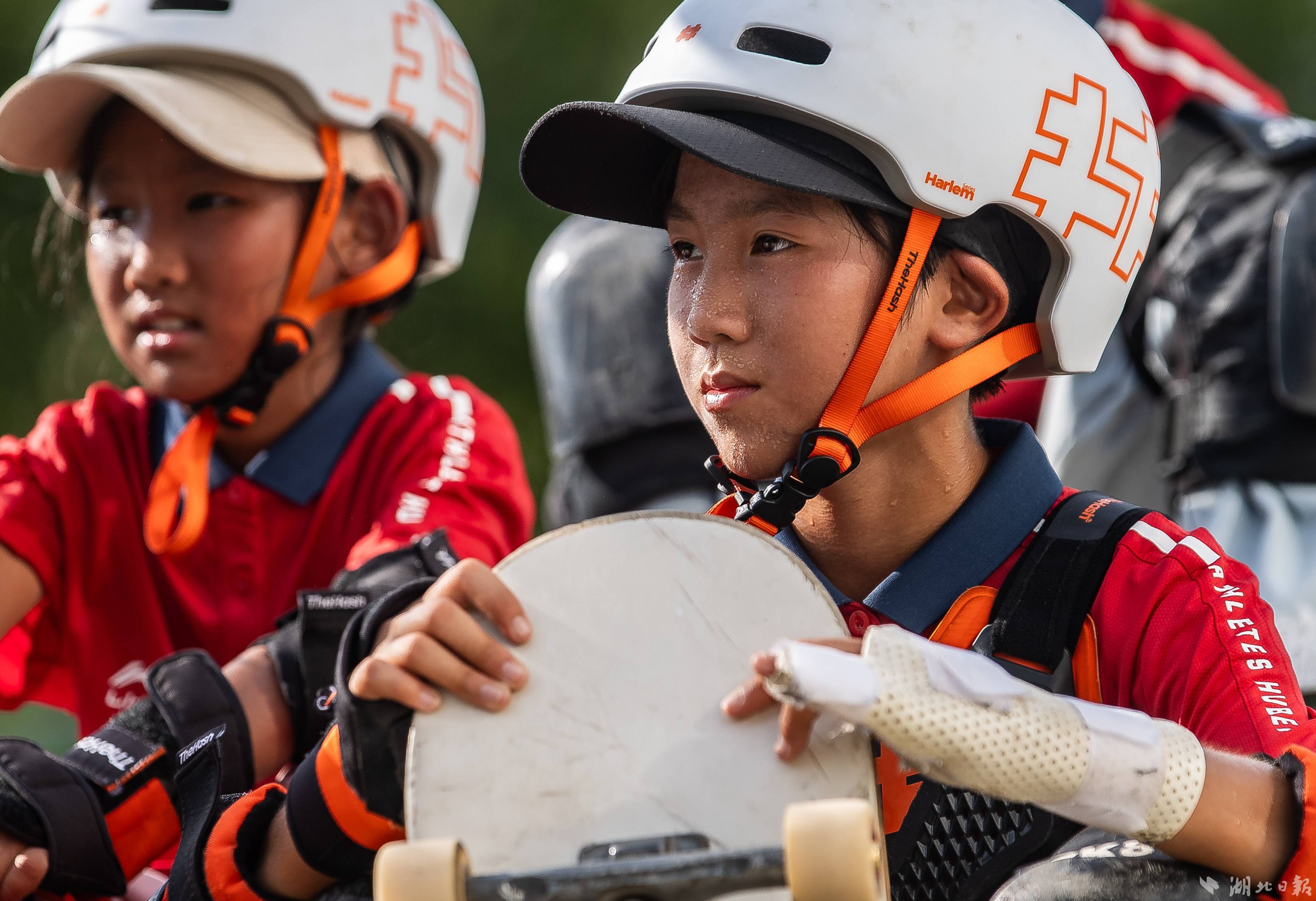 记者在训练现场看到,烈日下,小运动员们一个个被晒得黝黑,发红的小脸上布满汗珠。他们冒着高温,练了摔,摔了练,一次次跌倒,又一次次爬起,只为滑出惊艳的动作。