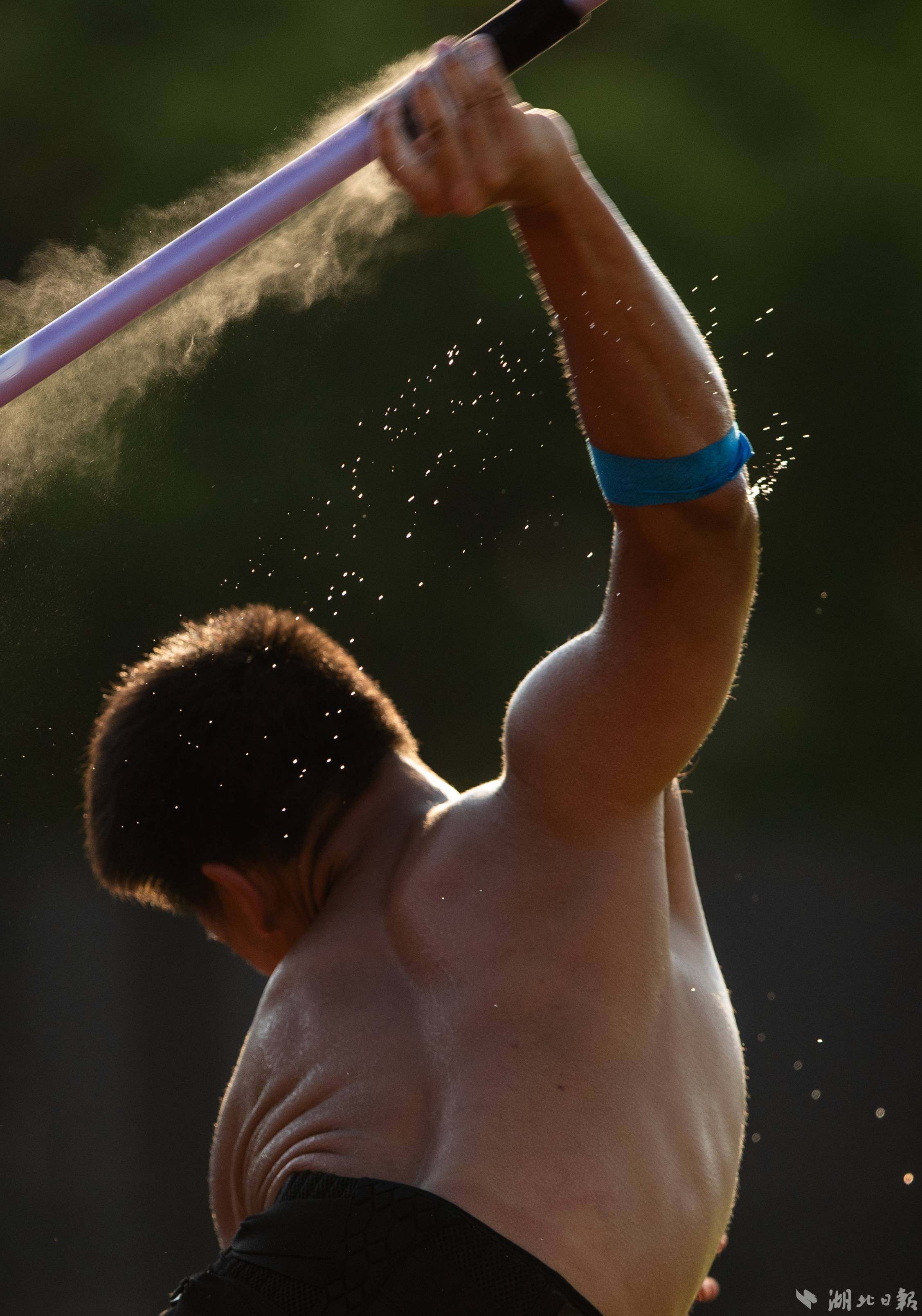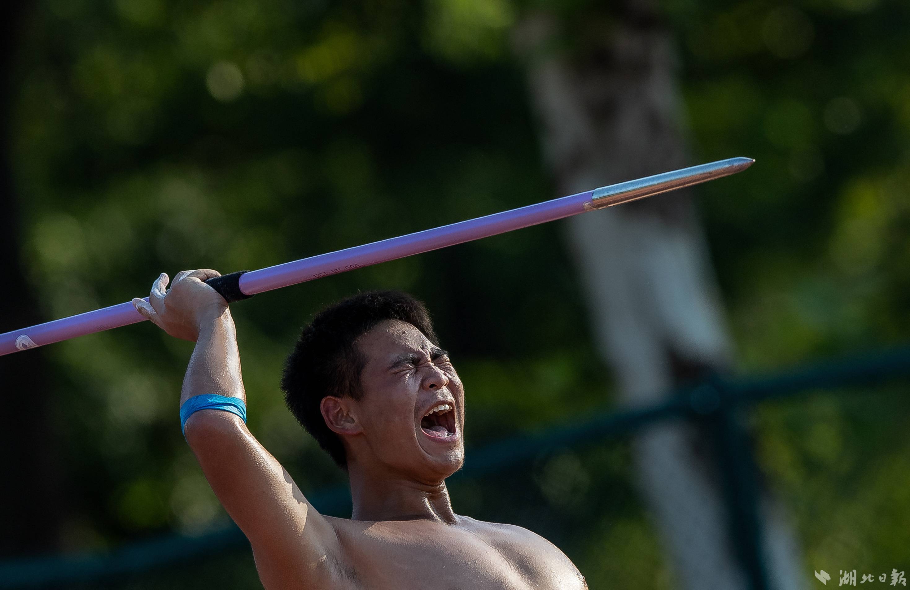8月5日,标枪运动员在田径场上奋力一掷,挥汗如雨。