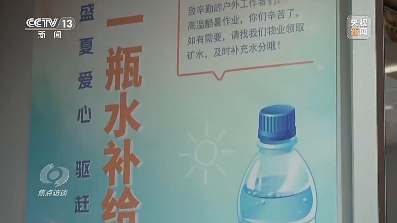 高温烈日下,为了保障户外工作人员的健康和安全,各地都纷纷推出了送清凉的措施。比如最近,在上海的一些社区里就出现了“一瓶水”的补给站点。