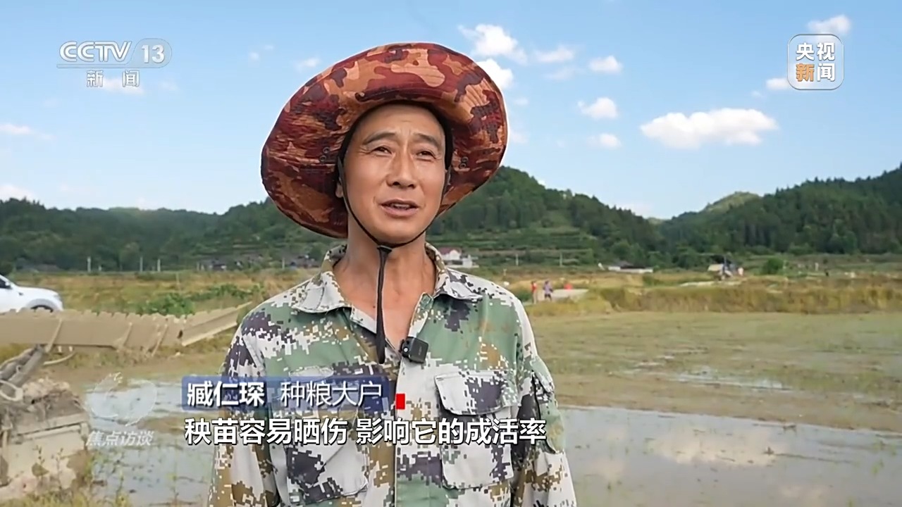 种粮大户臧仁琛:这个天的温度实在太高了,秧苗容易晒伤,影响它的成活率,担心以后产量会下降。