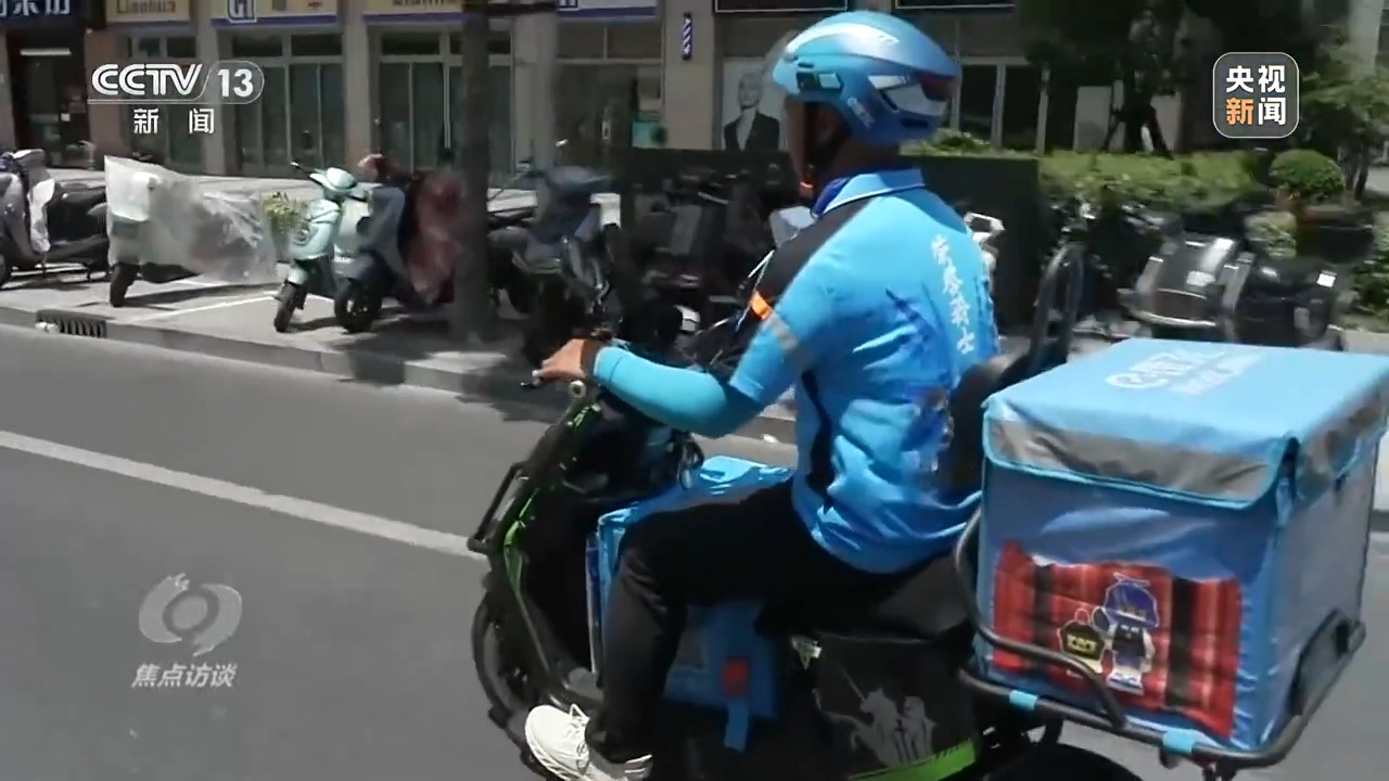 最近一段时间,上海白天最高气温一度达到40℃,气象台连续发布高温橙色甚至红色预警,外卖单量有10%到15%的增加。这天,外卖骑手张文强开始了每天的午高峰配送,不到1小时的时间里,他完成了将近10单的配送,汗水湿透衣衫。干了8年外卖的张文强说这天气,多多补水是最重要的。