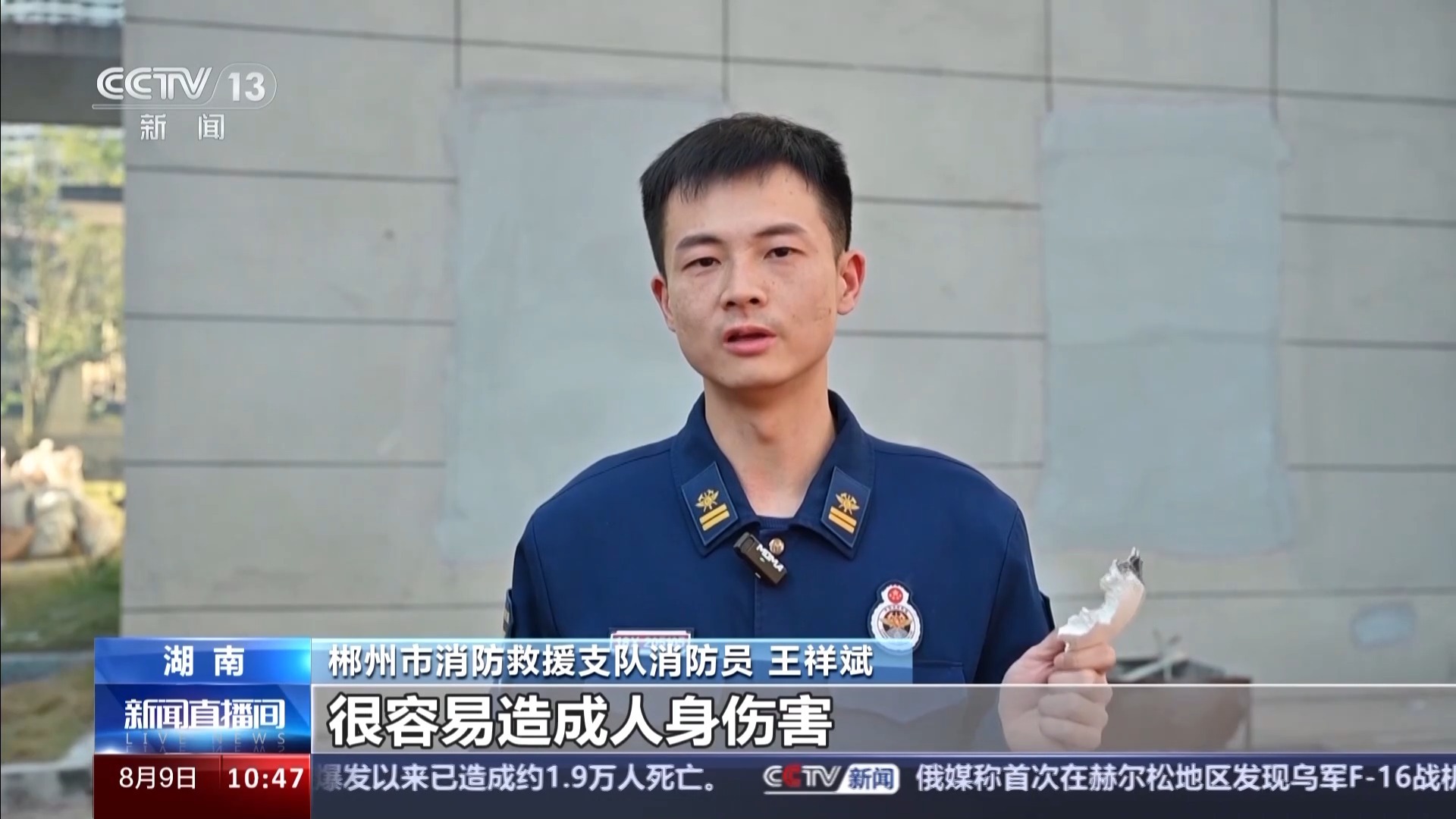 郴州市消防救援支队消防员 王祥斌:虽然现场的火势已经被扑灭了,但是我们可以看出,这个产品还是具有一定的危险性的,如果使用不当很容易造成人身伤害,不一定适用于我们居民的日常家庭以及生活中。