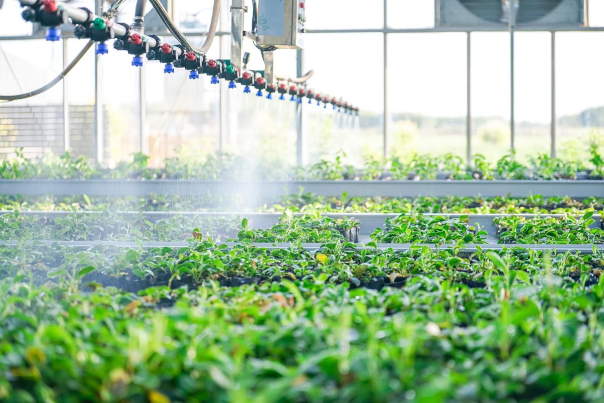 安国现代中药农业园区的自动喷灌系统在作业。安国市委宣传部供图