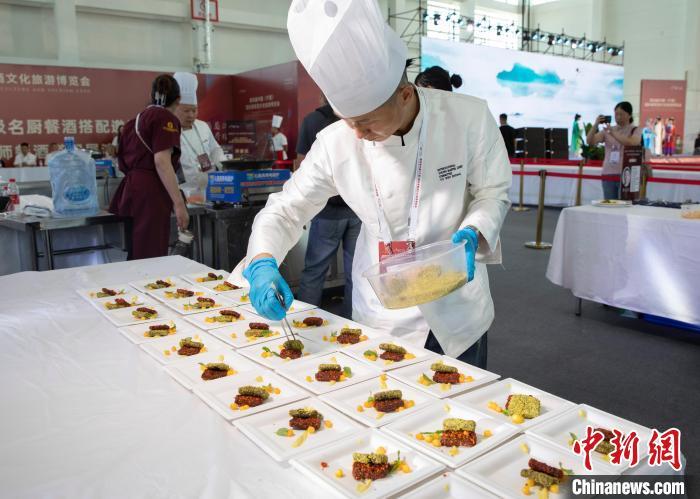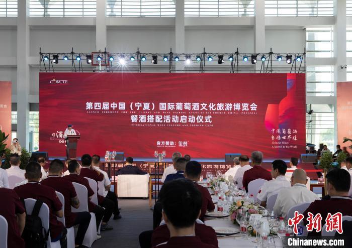 8月9日,第四届中国(宁夏)葡萄酒文化旅游博览会餐酒搭配活动在银川启动。本次活动由宁夏贺兰山东麓葡萄酒产业园区管委会联合世界中餐业联合会共同举办,邀请各地名厨将中餐与葡萄酒搭配结合,现场烹制菜肴。图为启动仪式现场。中新社记者 杨迪 摄