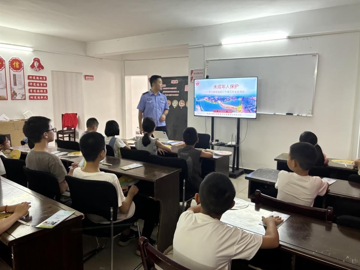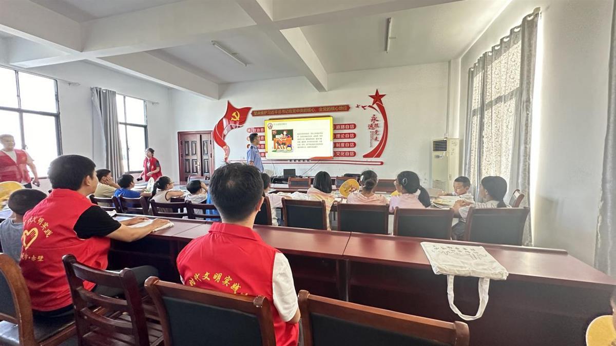在茶庵岭镇白石村新时代文明实践站,赤壁市网络文化协会的网络文明志愿者向暑期托管班的学生们,分发了《未成年人网络保护条例》宣传手册,从网络素养、网络直播、网络消费等9个方面宣传了条例内容,引导未成年人正确认识网络、合理使用网络,引导孩子们对网络乱象说不,用法治守护“未”来。