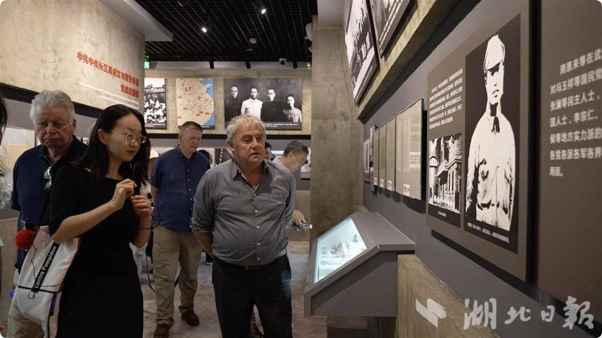 菲尔·梅杰市长一行被热情迎进纪念馆展厅,一张拍摄于武汉“八办”屋顶花园的黑白照片上,周恩来与路易·艾黎等国际友人的音容宛在。
