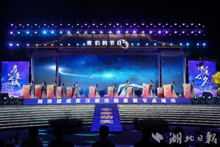 湖北日报讯(记者方桐、王欣、通讯员万阳、李林)孝爱之城,浪漫七夕。8月9日晚,2024年全国“我们的节日•七夕”主题文化活动(湖北孝感)暨中华孝文化旅游节在孝感启动,这是全国六场主题文化示范活动之一。