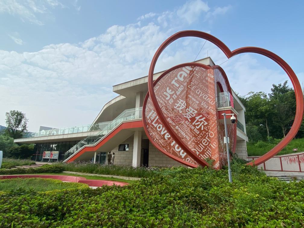 桂溪生态公园婚姻登记处的双心“爱墙”雕塑十分醒目。新华社记者 周以航 摄