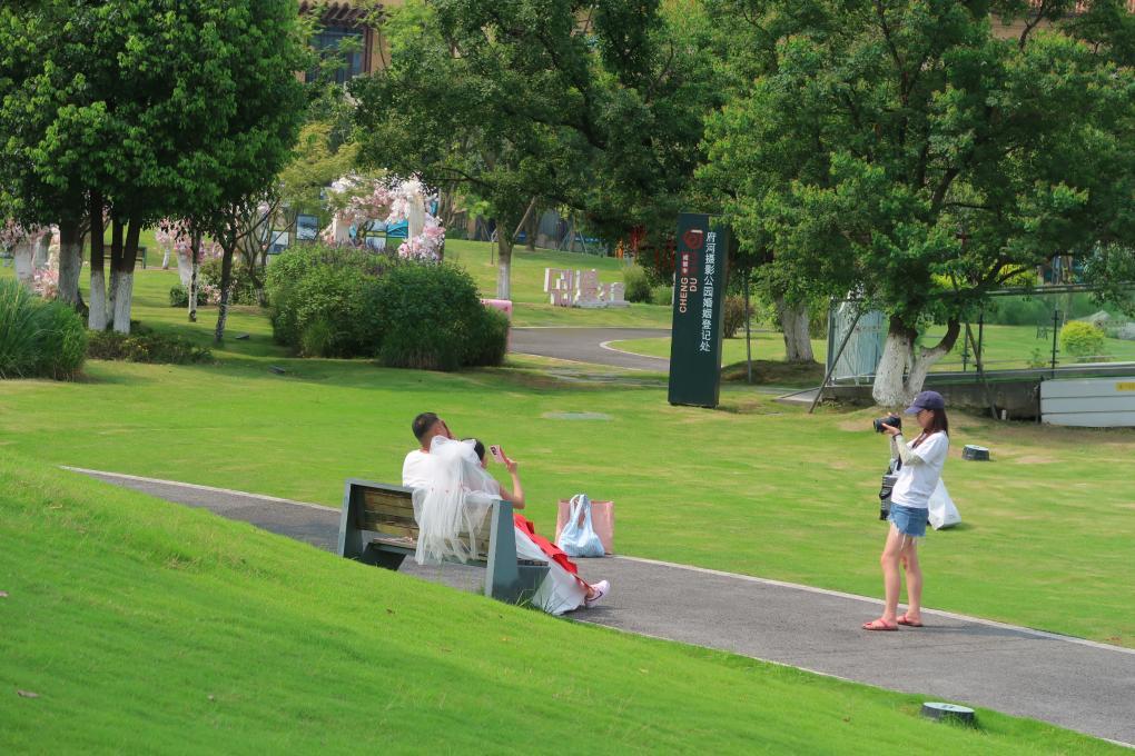 公园式婚姻登记场所受到关注,也带动了领证跟拍、婚纱摄影等相关产业的发展。记者注意到,许多新人在领证时身后都有摄影师全程记录。跟拍摄影师熊先生表示,公园式婚姻登记点内部布置温馨,周边景色宜人,许多情侣都喜欢在公园里合影,自己也成为各个公园式婚姻登记处的常客,熟悉附近的诸多打卡点位。