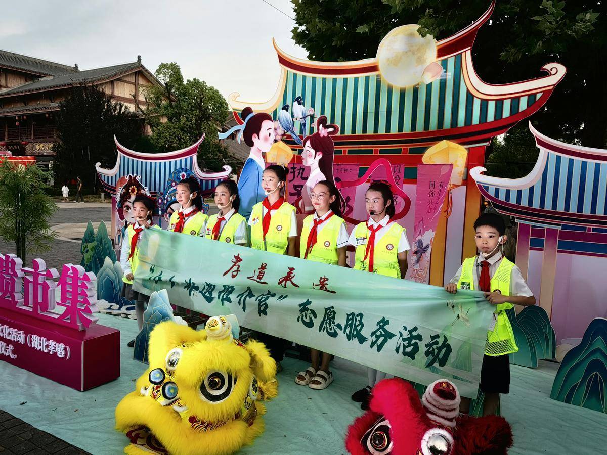 孝感市玉泉小学四年级学生唐梓琳是当中的一员,孝感雕花剪纸项目由小唐负责推荐。介绍完剪纸的发展历程,小唐向游客们普及:“七夕的一项重要民俗是乞巧,在月下拿丝线穿针,最快穿过去的,手最巧。”
