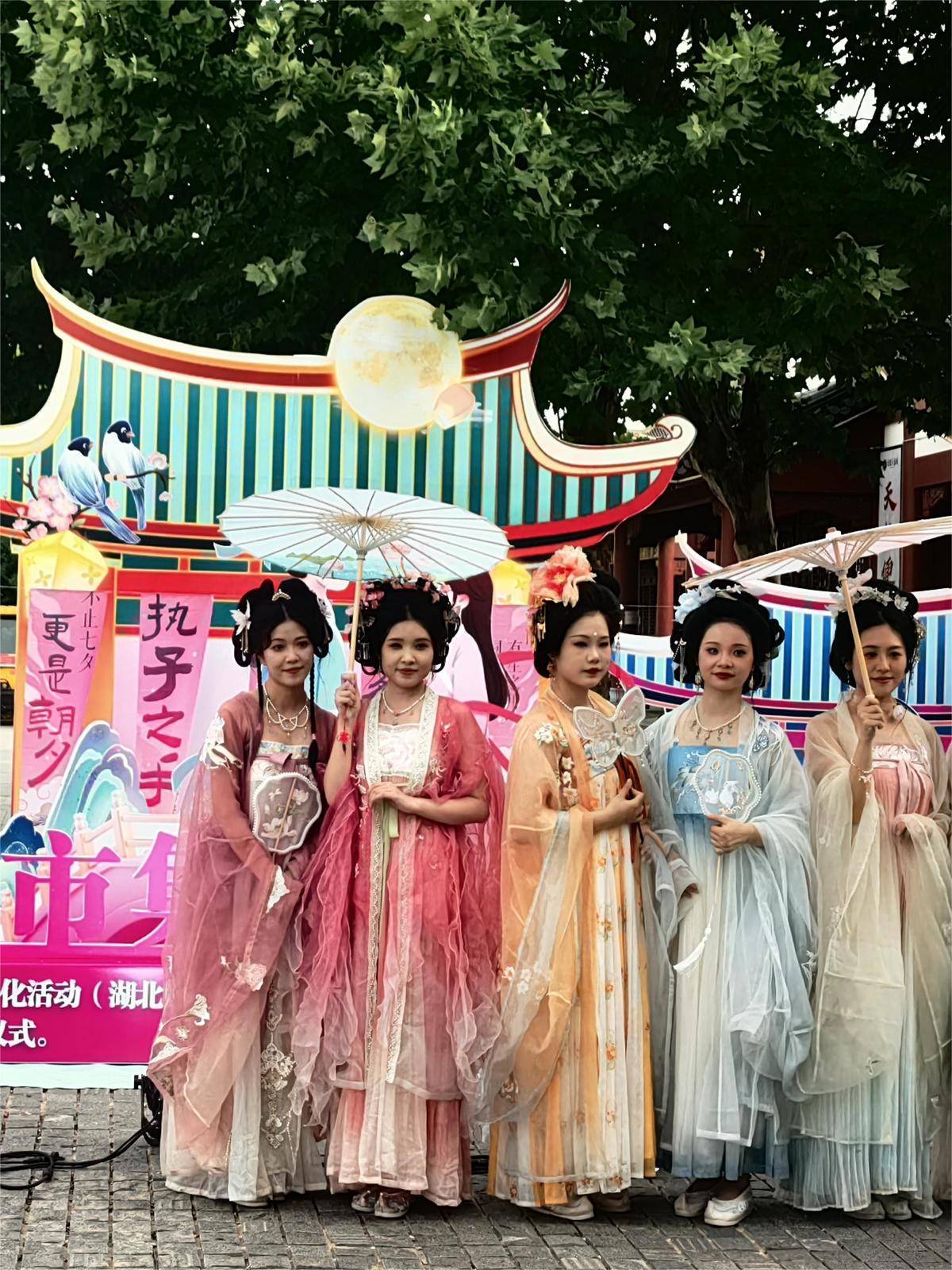 孝感凤凰天仙城人头攒动,作为2024年全国“我们的节日·七夕”主题文化活动示范点,这里的非遗市集聚集了孝感特色非遗技艺与产品,吸引了不少市民和游客前来赶集。