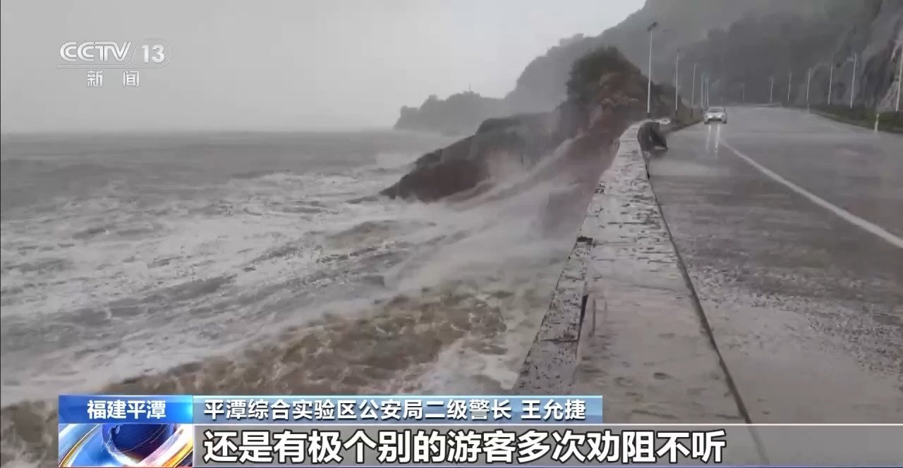 平潭综合实验区公安局二级警长 王允捷:我们发现有少数的游客到海边观看台风,也发现极少数的自媒体博主为博取流量到海边进行直播,被我们公安机关发现并制止。