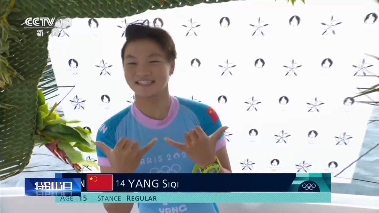 来自中国四川凉山的15岁冲浪少女杨思琪,面对强劲对手,首次参加奥运会的她晋级女子16强。