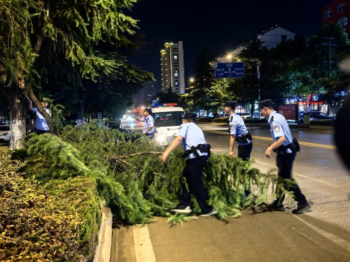 京山警方清理挡路树枝,消除道路交通安全隐患