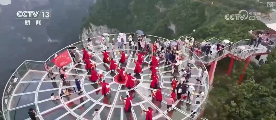 在湖南张家界,这个暑期,当地推出一系列文旅大餐。在海拔1500多米的湖南张家界七星山上,土家迎宾鼓、土家花灯戏、桑植民歌等非物质文化遗产节目精彩上演。