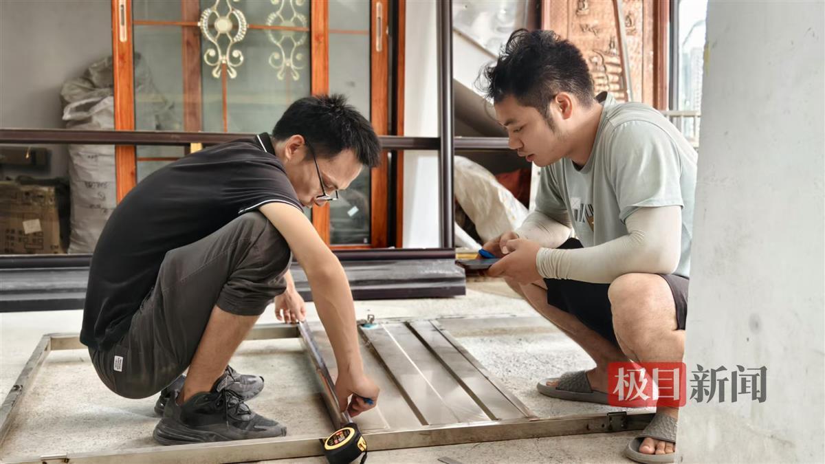 “我们本身就是做门做防盗窗的,知道哪里能承重,知道防盗窗上两根铝合金管的间隔有多大。”杨双蹲在防盗窗里,用力挥刀将两根竖向的铝合金管拦腰砍断,再徒手将管子掰断制造出了一个35厘米见方的孔洞。杨双个高,较瘦,很快便从孔洞钻出,爬到二楼防盗窗的顶上,而陆云顺则留在二楼,使劲用膝盖顶住杨双落脚的位置,以防铝合金管因承重弯折。“我们经常一起干活,他个子又高又瘦,胳膊还长。”陆云顺知道杨双出去更有利于救人。