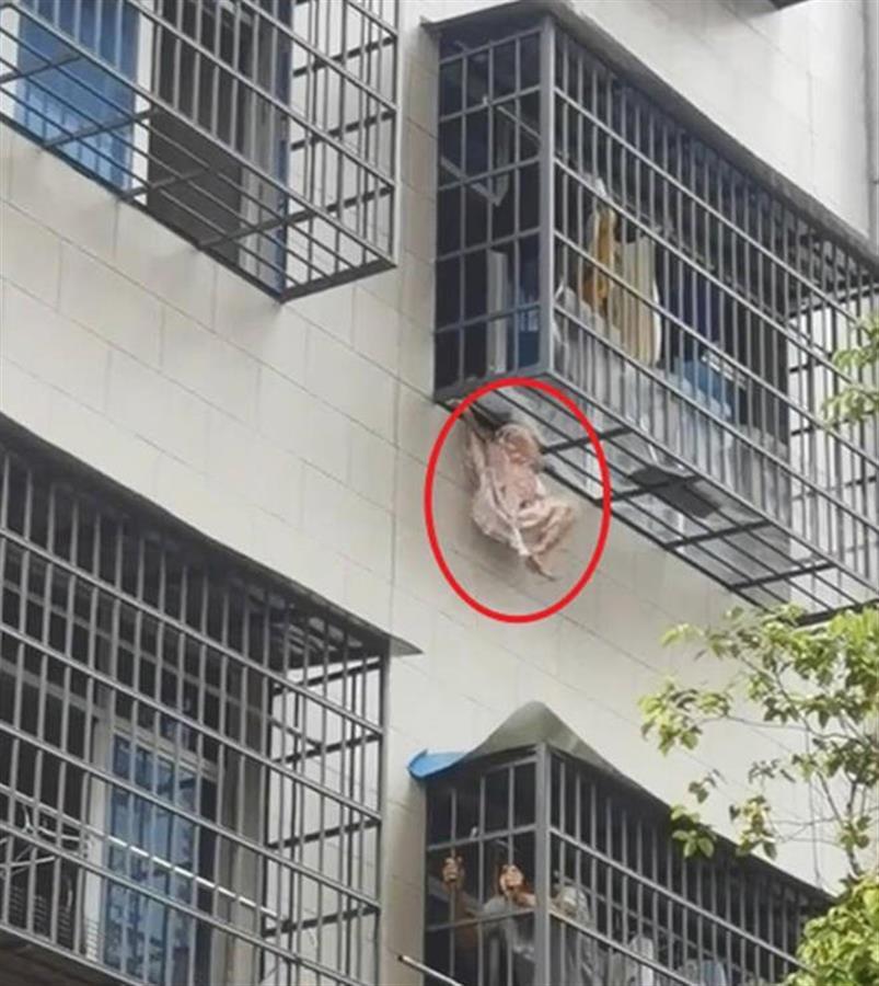 8月11日,广西河池一名小女孩脖子卡进三楼窗户防盗窗,身体悬空,不停挣扎。危急时刻,一名在当地做生意的湖北小伙急中生智,用刀将二楼窗户防盗窗砍断后,从孔洞中钻出去,成功将小女孩拖起救下。