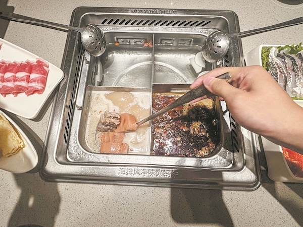 “选择藕汤骨头锅底是因为好奇,这个锅底的藕汤很浓稠,比较好喝。”采访中,一位同样点了藕汤骨头锅的顾客告诉记者,这是她第一次尝试该锅底,藕很糯、汤也很鲜,但用藕汤来涮火锅并没有很惊艳,“与火锅特色的蘸料并不适配,蘸料会盖过藕汤的味道。”