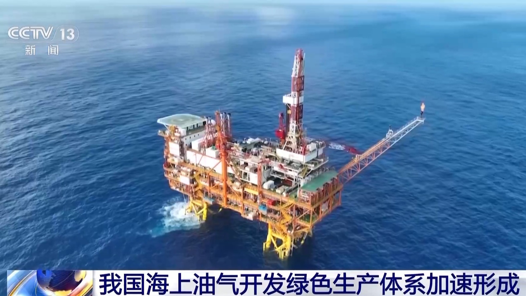 画面上是不久前我国最大规模海上岸电应用工程成功送电的现场。简单来说,就是海上平台不用再自己发电,而是通过电缆,从陆地源源不断地向海上生产平台输送电能,这样一来,会大大降低海上油气平台的碳排放。眼下,我国在海上油气平台中使用的绿色低碳技术还不止这些。