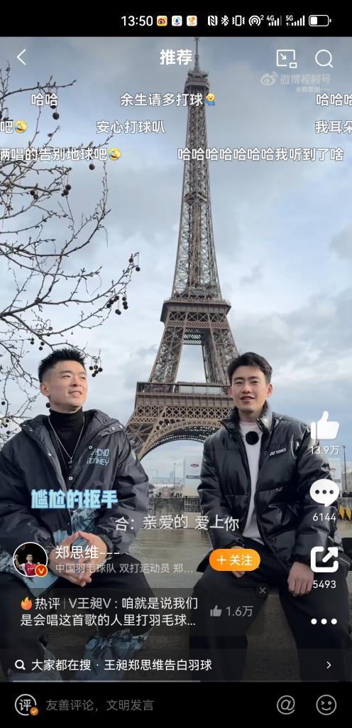 郑思维、王昶自制《告白羽毛球》MV