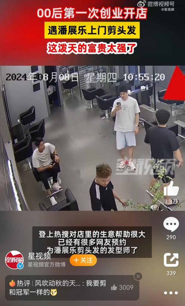 潘展乐在上海理发店剪头发