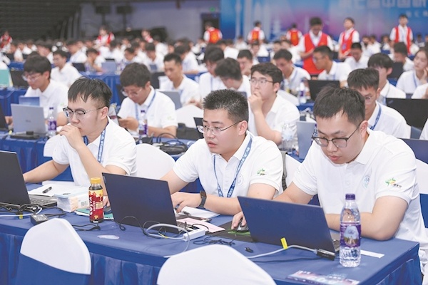 当天上午,500多名参赛选手安静地坐在比赛场馆内,眼睛紧盯电脑,手指不停地敲击着键盘,这是大家共同的神态。