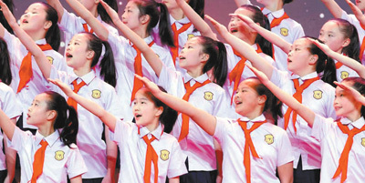 去年7月,浴辉带着孩子们去北京天安门广场观看升旗仪式。在升旗仪式即将开始的时候,骤雨忽至。孩子们全部脱帽肃立,把红领巾从雨衣里小心翼翼地拿出来,在胸前抚平,齐刷刷地向冉冉升起的五星红旗敬上庄严的少先队队礼。