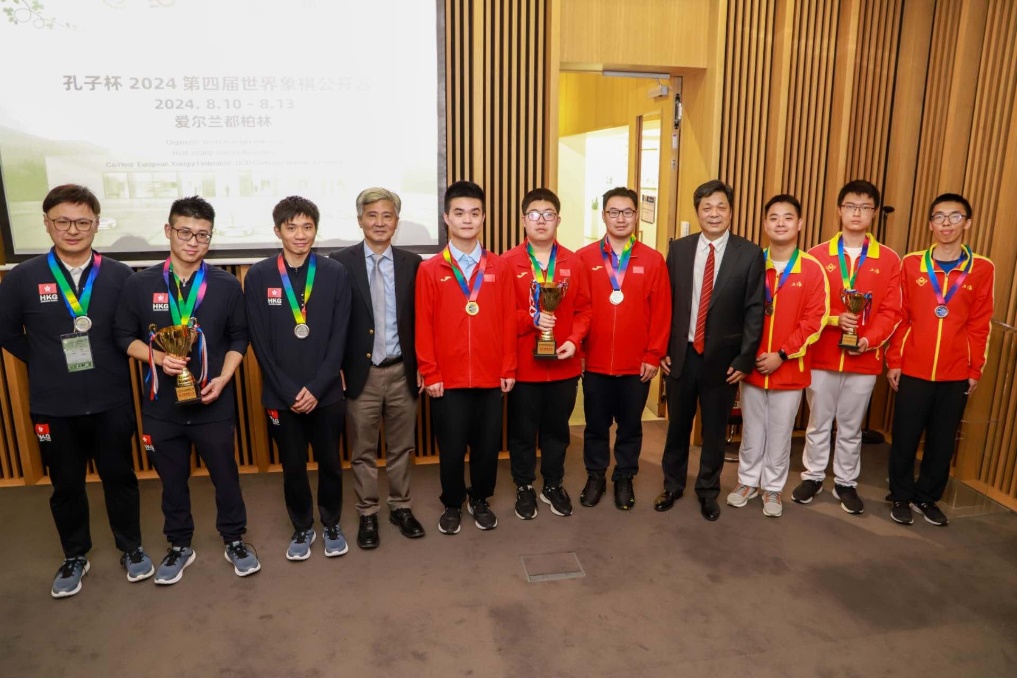 新华社北京8月14日电 中国象棋协会消息,孔子杯第四届世界象棋公开赛于13日在爱尔兰的都柏林大学孔子学院结束。中国男队七战七胜夺得男子团体金牌,中国女队以3胜1平的成绩摘得女子团体桂冠。