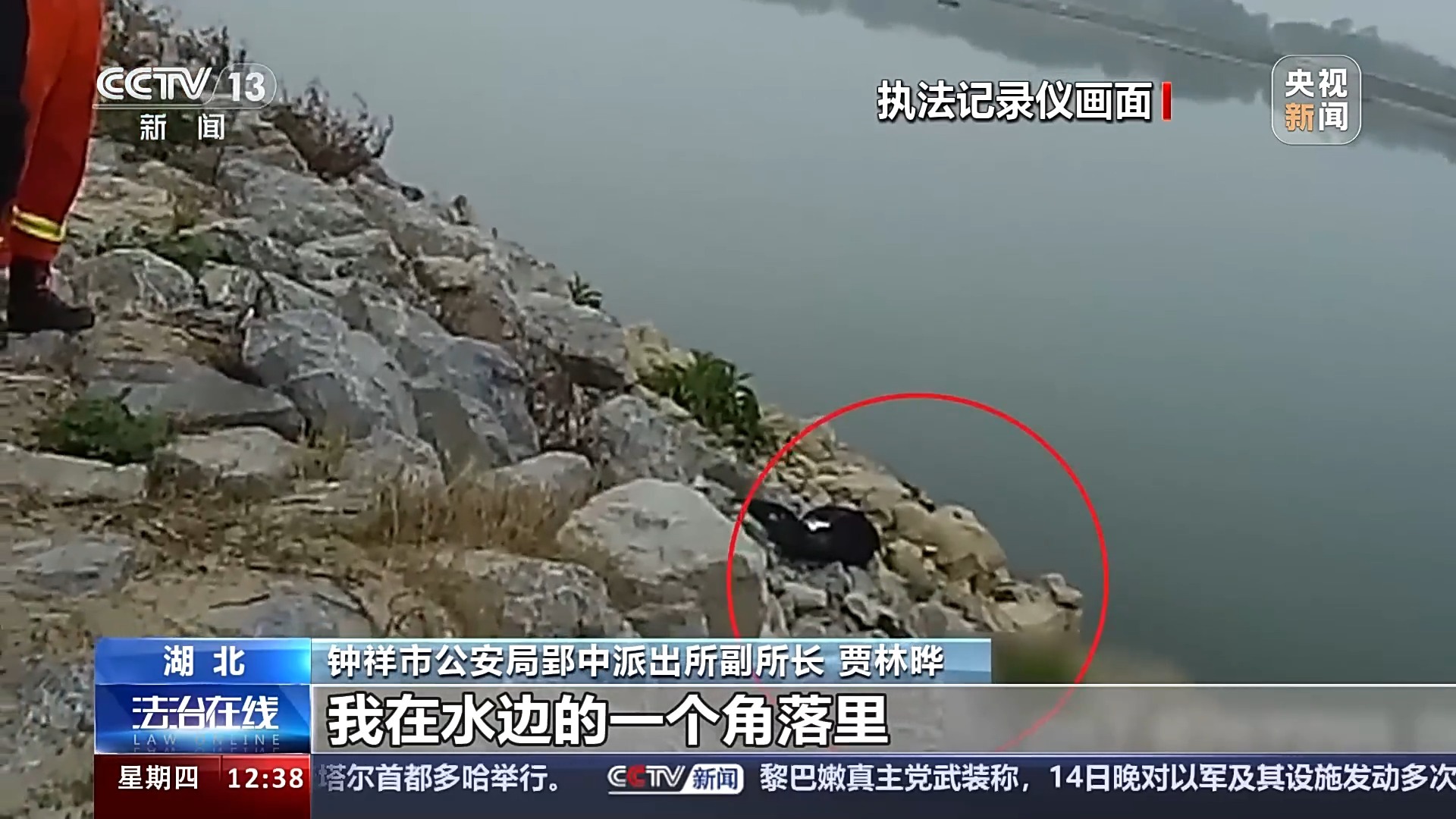 钟祥市公安局郢中派出所副所长 贾林晔:我在河水边的一个角落里看到了遗留物。