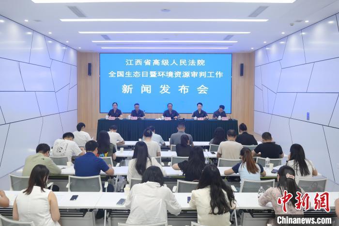 15日,江西省高级人民法院举办新闻发布会通报2023年以来江西省法院环境资源审判工作情况。江西省高级人民法院 供图