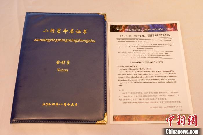 8月15日,经国际天文学联合会小天体命名委员会批准,永久编号为215458号的小行星被命名为“余村星”。天荒坪镇供图