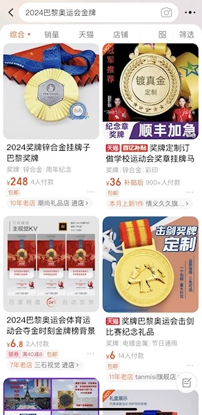 巴黎奥运会闭幕,众多奥运同款也跟着火了起来。极目新闻记者搜索发现,多个电商平台上出现了大量奥运奖牌仿制品,商品图片与巴黎奥运会运动员所获的奖牌外观无异,售价从100多元至500多元不等。一奖牌售卖的商家自称“这些奖牌制品与真品有90%的相似性”,奖牌制品产地包含深圳等地,“有的当天下单当天就能发货”。