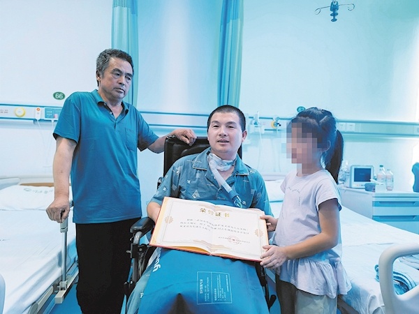 当日,记者在同济医院某院区了解到,经过一个月的治疗,陈帥偉已经从ICU转至康复病房,接受高压氧舱等治疗。潘女士介绍,目前丈夫处于因溺水造成的脑损伤状态,不能走路、无法认清家属、不记得当时救人经历,不过语言、运动能力正在缓慢恢复中,开始可以用简单的词语跟家人做一些交流,但他仍需接受长期的康复治疗。
