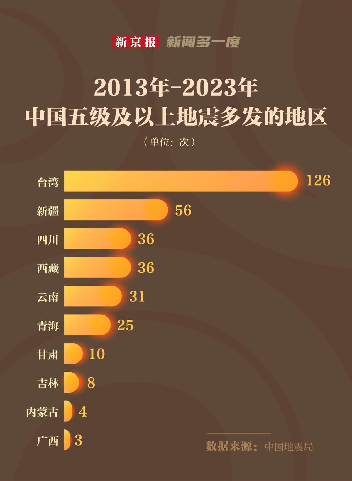 根据中国地震局此前公布的地震记录,近10年来,台湾地区为我国发生五级及以上地震最多的地区,超过100次。