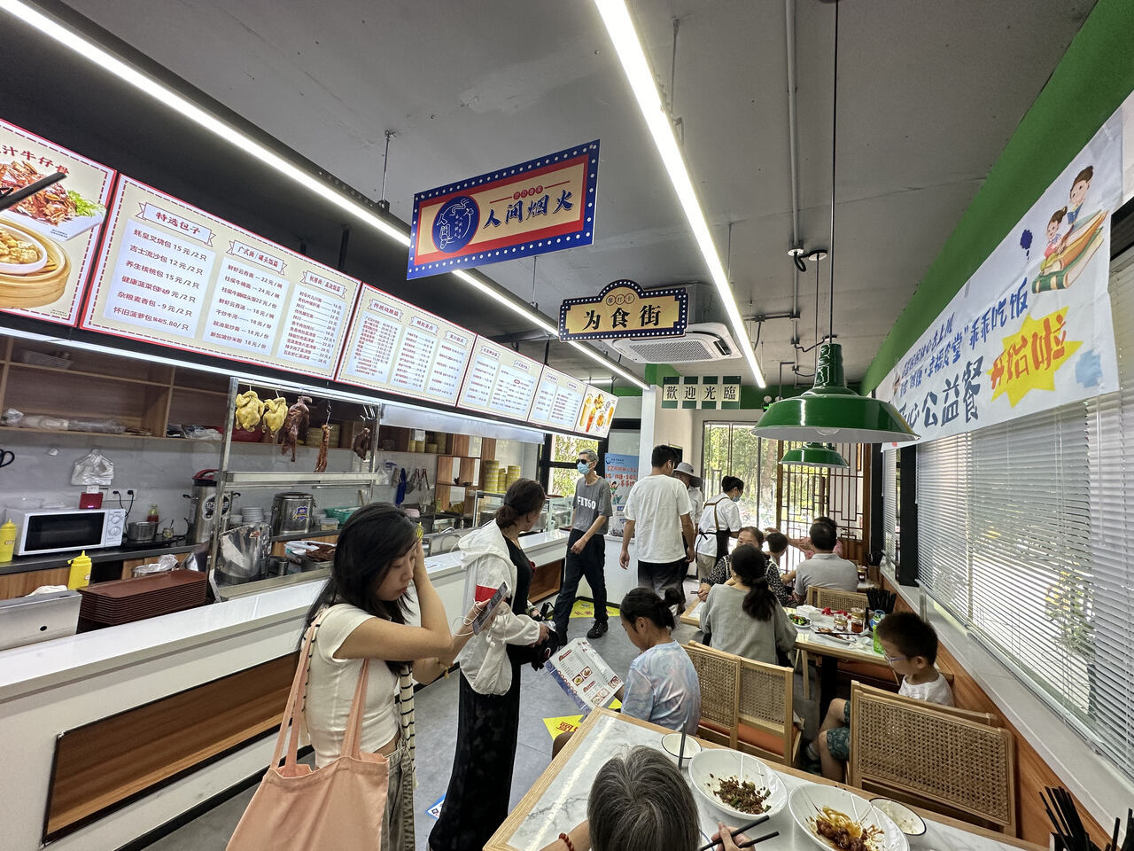 另一头,家住附近的李水华夫妻俩点了一盆干炒牛河和一碗片儿川。“我喜欢吃杭州老味道片儿川,老伴儿口味偏甜,对港式牛河情有独钟。食堂花样越来越多了,让我们每天都能尝试新的口味。”李水华对这里赞不绝口。