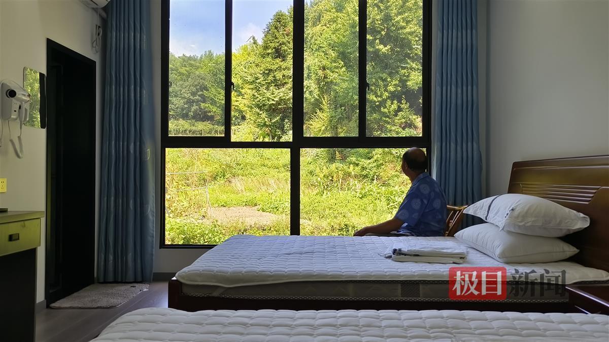 山林人家隔壁竹园农家乐的经营者是62岁的刘忠保,民宿有4层,自己住在一楼,楼上有11间客房。房间干净明亮,推开客房的窗户,就可看见菜园和山林,一派山居田园风光。刘忠保表示,他原来在武汉城区打工,清凉寨景区开建后,他回乡将原来的老房子推掉,建设了新房,用于开设农家乐和民宿。