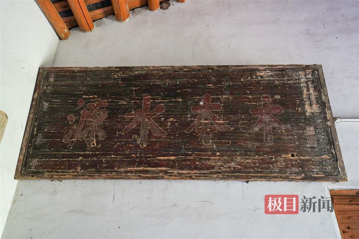 在故居的墙上,有一块表面略微发黑的木匾,上面写着“木本水源”四个大字。牌匾上还写着一些小字,题款内容为“赐进士及第□□浙江□□部院通川□□督部堂现任刑部左侍郎诰授资政大夫□筠□题”,落款为“道光岁次丁酉孟冬榖旦”。