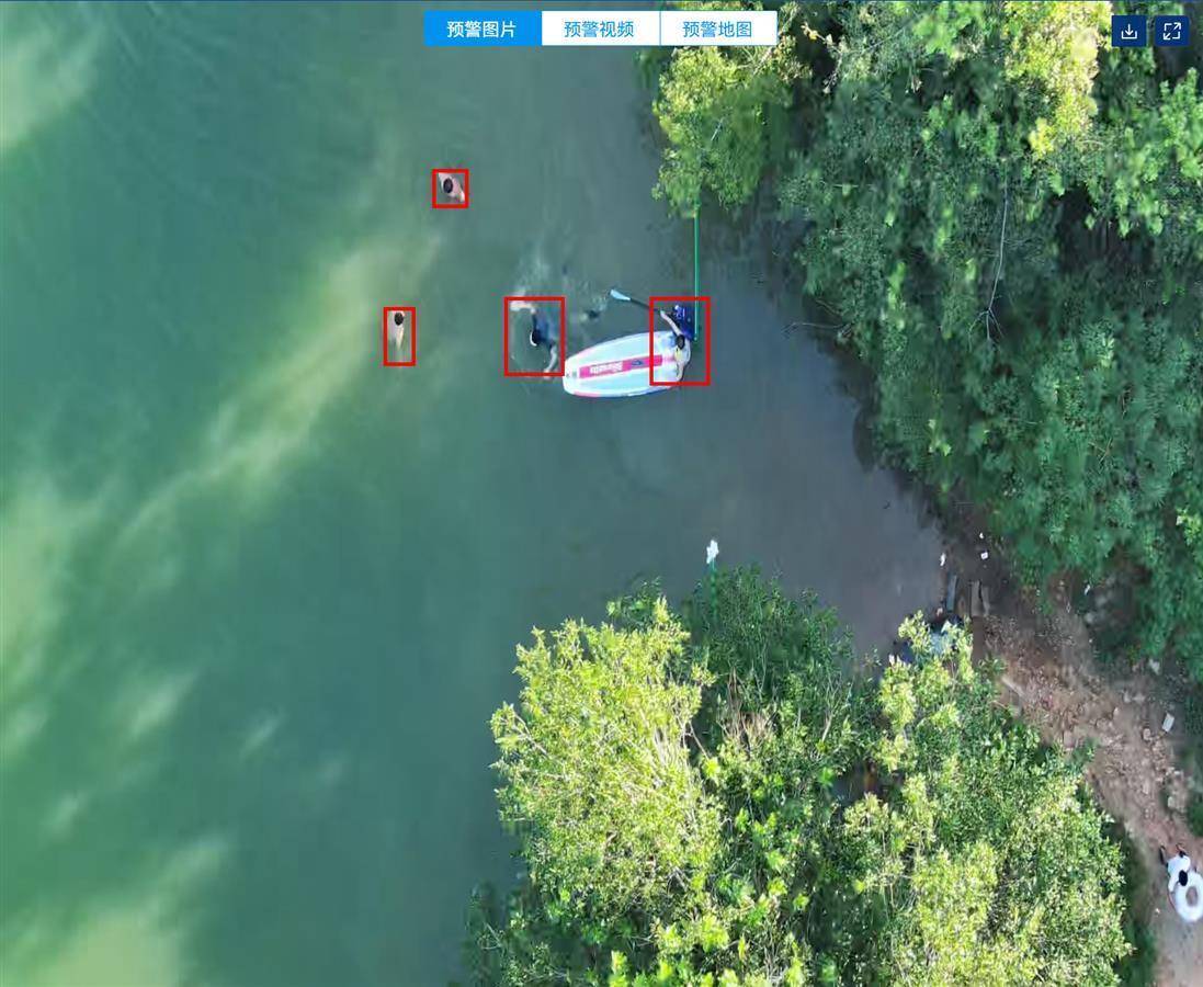 以游泳为例,人若在江河湖库等禁游区游泳,无人机会识别出这是“危险”的,然后触发警报,同时提醒后方工作人员做进一步措施。但倘若人在露天泳池里游泳,无人机就会判断这是“安全”的,不会出现预警。