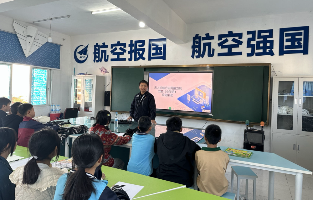 陈忠超在良田小学给孩子们上无人机课程。新华社发