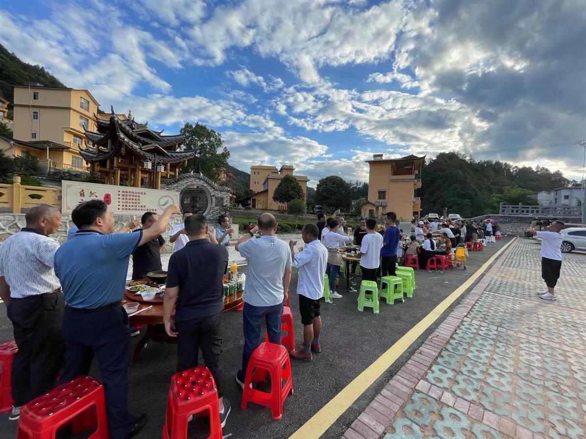 院落文化广场上,一张院落70多位村民举杯相庆的照片格外引人注目。照片中,老人、小孩、年轻人围坐在临溪别院前的广场上,餐桌上还冒着热气。他们满含笑容,吃着“坝坝宴”。