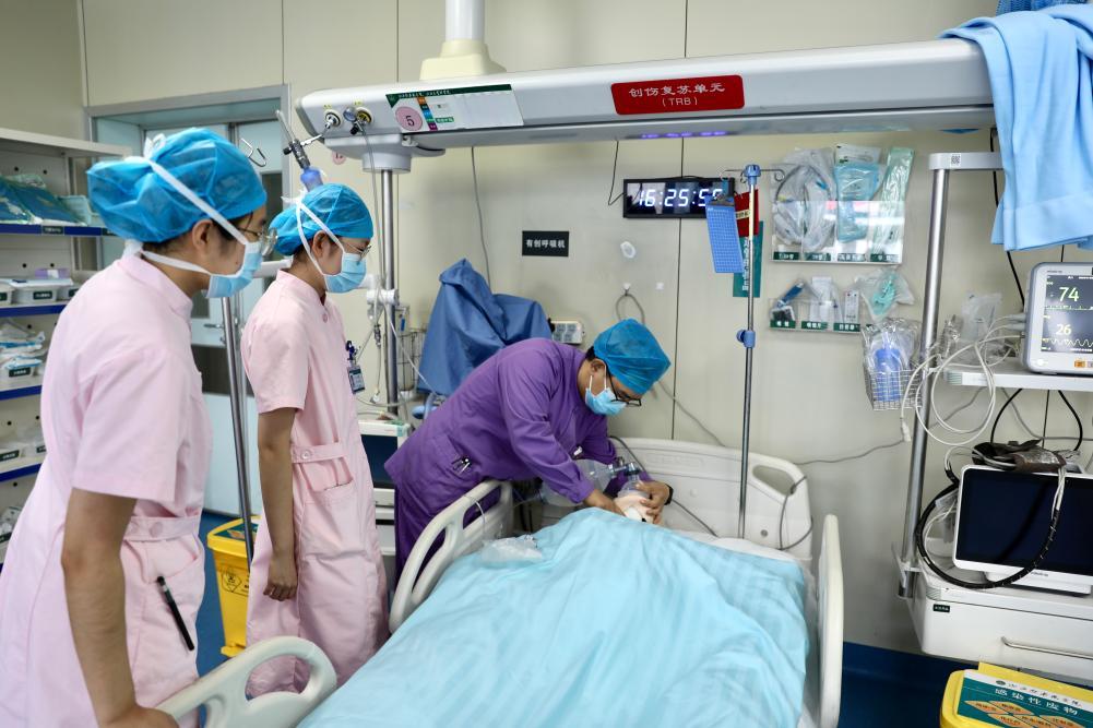 急诊抢救室倘若没有新进的病患,护士们会利用空余时间练习抢救实践技能——“简易呼吸器辅助呼吸”,该操作可以辅助通气障碍的病人增加通气量,改善换气功能。