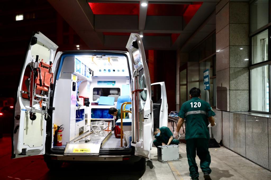凌晨时段是急诊外科抢救室的忙碌时段。因车祸等突发情况受伤的病人被送往急诊。在运送完一位车祸受伤的患者后,120救护车团队正在清理救护车上的血渍。