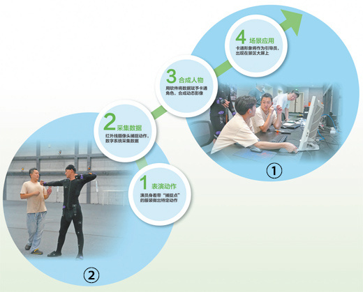 迎宾、鼓掌、奔跑,时不时地再露两手武术招式……走进天津市滨海新区国家动漫园,崔晟辑正和团队成员在动作捕捉棚内紧张忙碌。