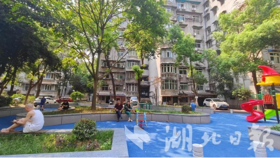 记者来到位于江汉区汉兴街道常青三路的馨苑小区看到,这座建于1998年的老旧小区,有了崭新的大门、宽敞的广场、规整的停车位和新建的电动车停车棚。尽管是三伏天的上午,高大的香樟树下,仍有三三两两的老人闲坐在石凳上,几个四五岁的小孩在玩滑梯。