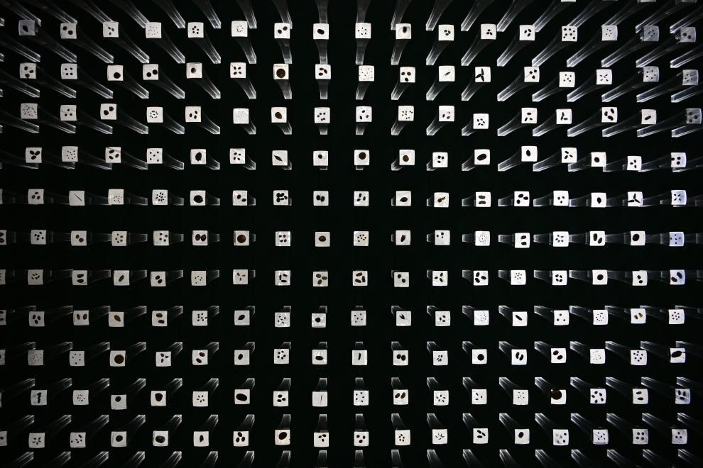 这是8月20日在种子博物馆内拍摄的亚克力柱种子展示墙。新华社记者辛悦卫 摄