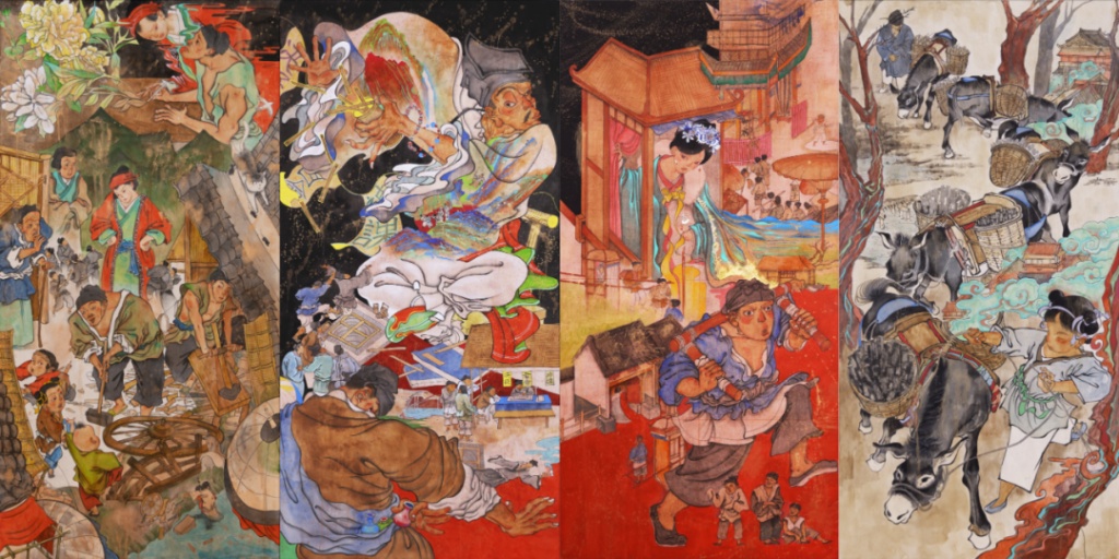 3分钟讲一个故事,仿佛古代的白话话本,没有太华丽的语言,也没有过于惊心动魄的跌宕情节,加上一支画笔,一千多年前发生的故事就浓缩进了这一幅幅浓墨重彩的工笔重彩画中。